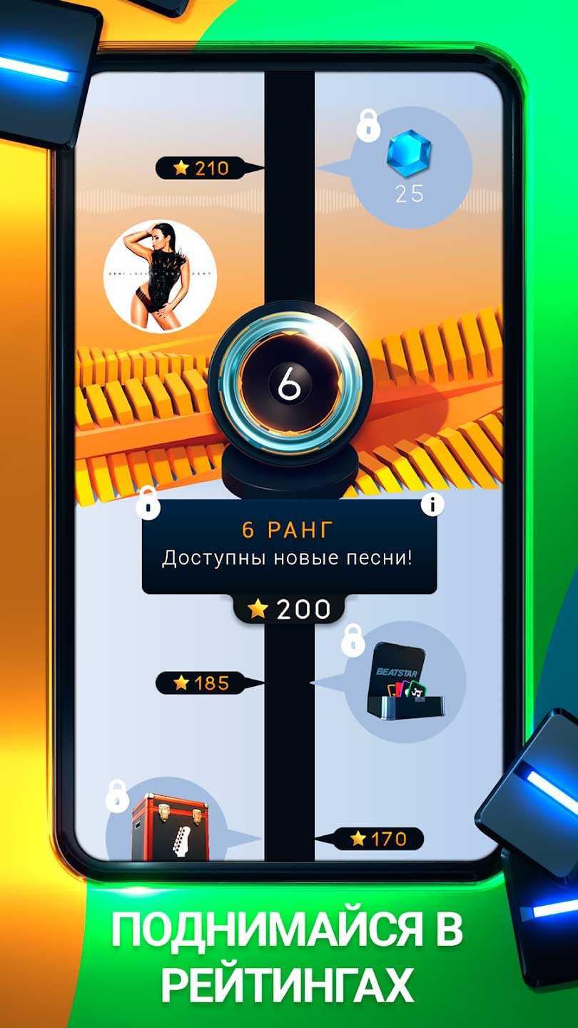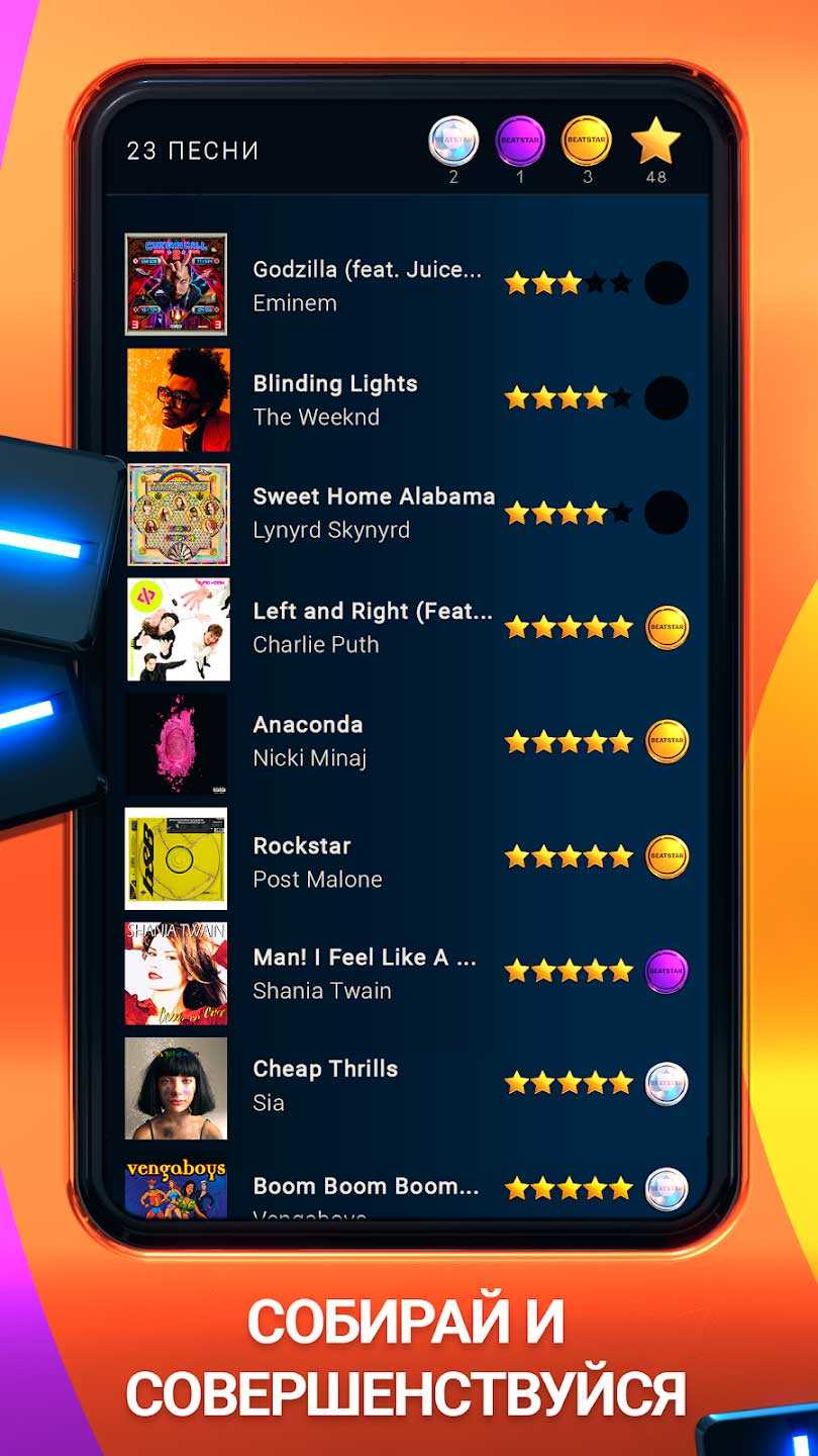 Beatstar – это очаровательная музыкальная игра нового поколения, в которой вас ждем истинное звуковое наслаждение. Выбирайте любимые песни, изучайте особенности их ритма, коснитесь пальцем экрана и дайте волю интерактивным инструментам. Здесь вы услышите давно знакомые композиции совсем иначе, и это вам точно понравится. Управление в игре не составит труда и для новичков, так что смело устанавливайте приложение и наслаждайтесь его музыкальным великолепием. Касайтесь каждой ноты, отстукивайте ритм и ощущайте вибрации телефона, добавляйте старые любимые композиции и открывайте новое для вас творчество различных музыкантов.
