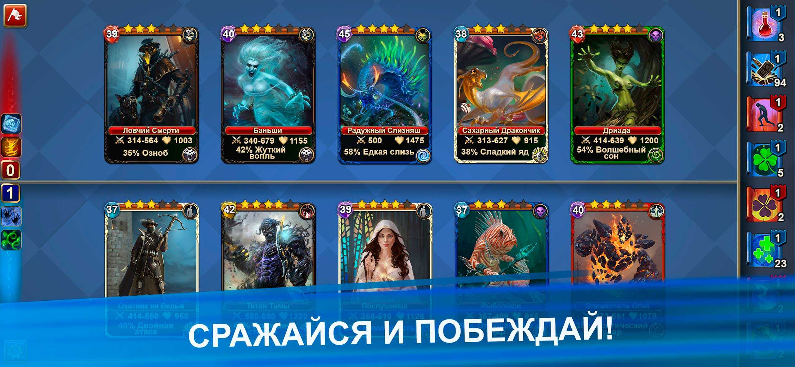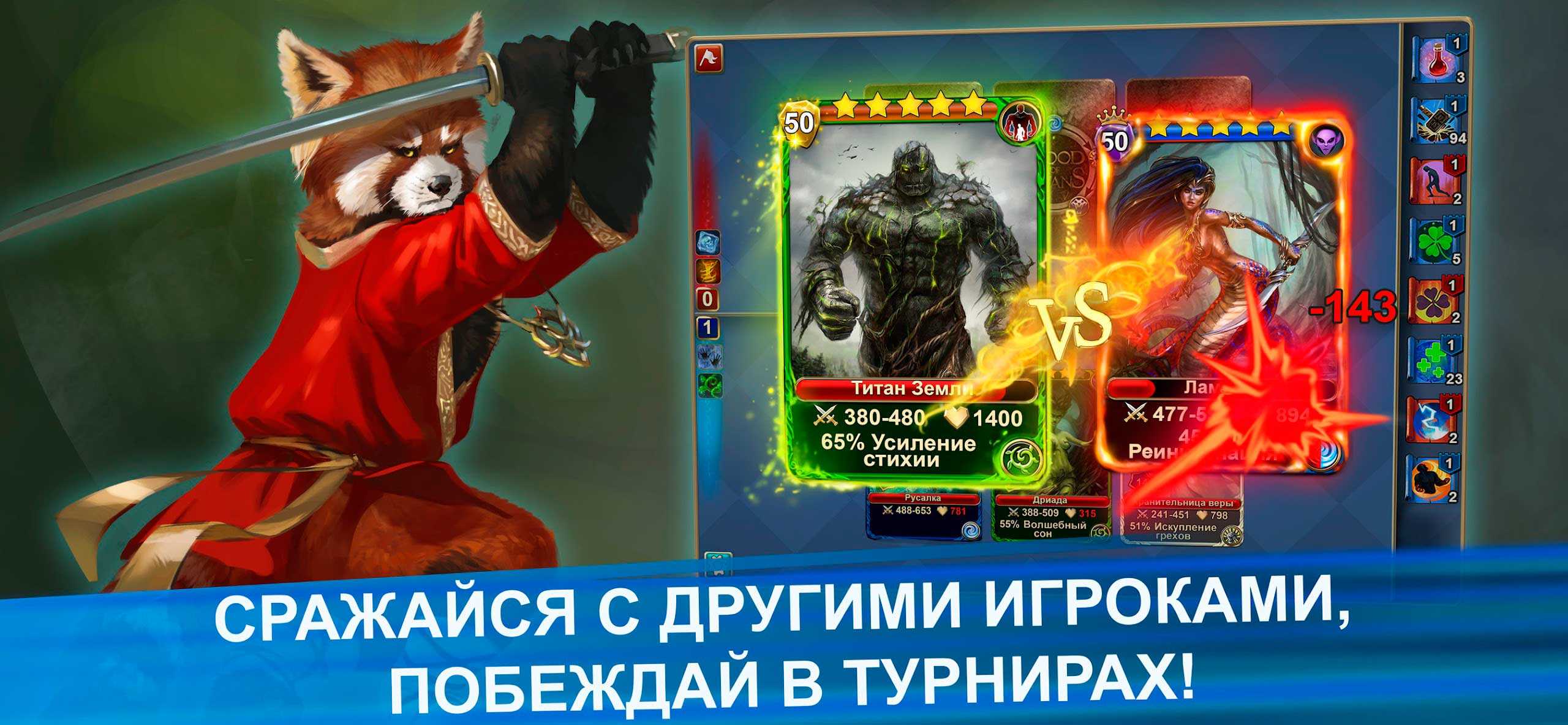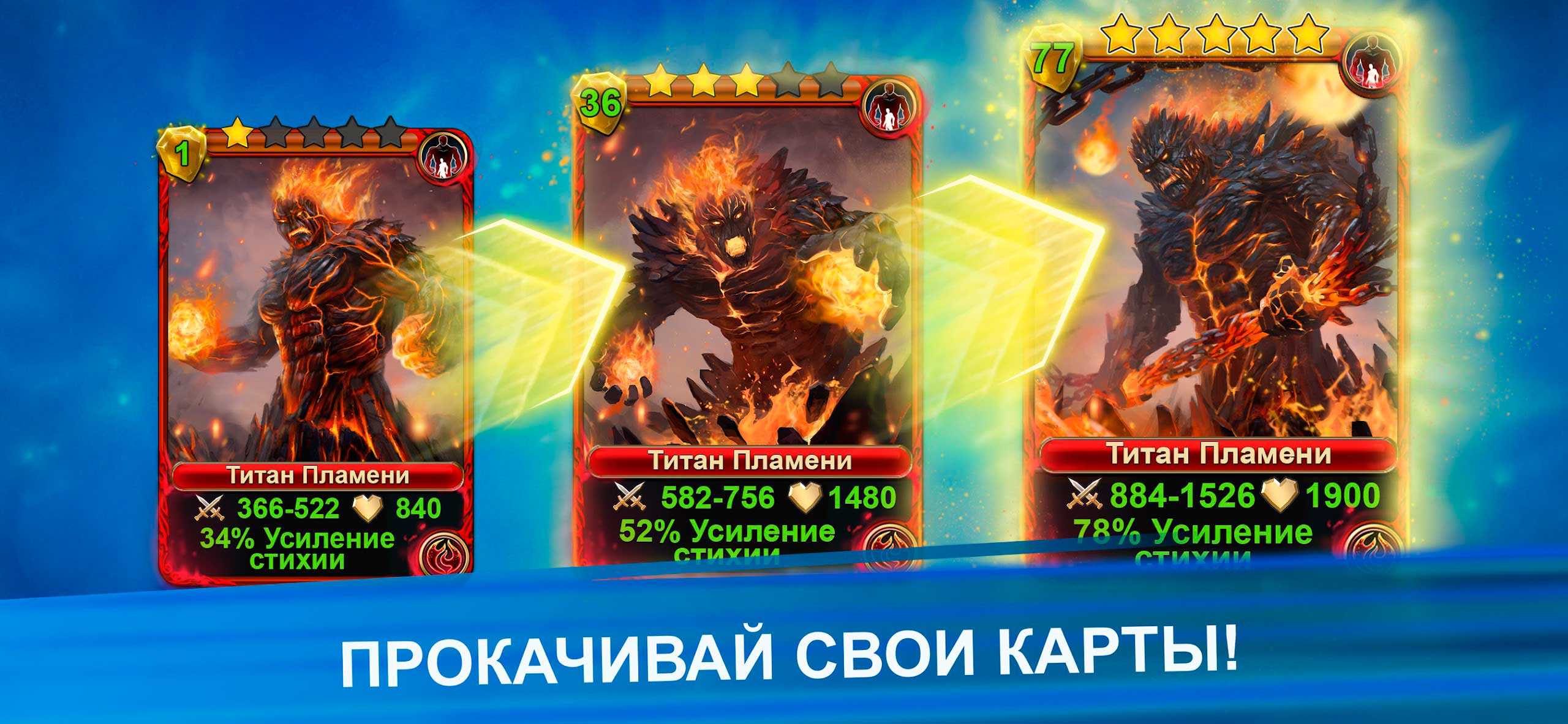 Кровь Титанов: Карточные Битвы – это захватывающая карточная игра с удивительным фэнтезийным миром. Здесь вы сможете подчинить себе все пять стихий и окунуться в ожесточенные битвы. Сотни разных карт с интересными способностями позволяют создать уникальную по своей комбинации колоду и показать всем настоящее игровое мастерство. Более двух тысяч квестов в текстовой форме станут достойным испытанием для любого геймера – проходите их и получайте ценные награды, чтобы сделать свою колоду еще могущественнее. Объединяйтесь с другими игроками, участвуйте в клановых битвах, выполняйте ежедневные задания и наслаждайтесь другим разнообразным контентом игры.