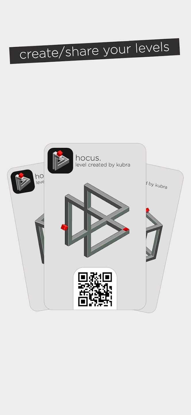 hocus. – это необычная мобильная головоломка, в которой за основу взяты рисунки М. К. Эшера с невозможными фигурами и обманчивой перспективой. Десятки занимательных уровней специально созданы для того, чтобы ввести в заблуждения ваши глаза. Проходите головоломки под расслабляющую музыку и наслаждайтесь успокаивающей атмосферой проекта. Здесь можно самому создавать уровни и делиться ими с миром – опробуйте себя в роли архитектора необычных загадок или решайте уже готовые. Кратчайший путь тут найти зачастую совсем непросто, так что лишь немногие смогут пройти все уровни.