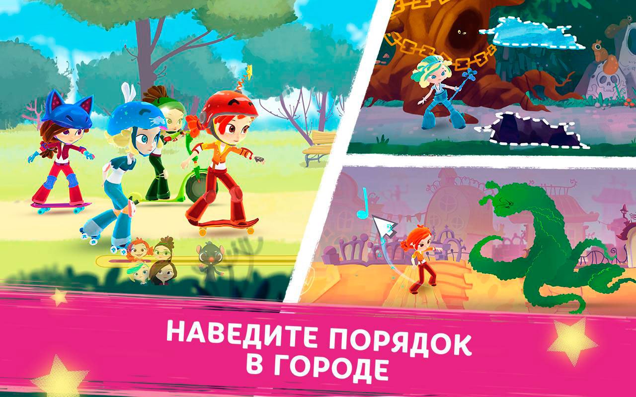 В игре Сказочный Патруль 2 вы будете выполнять множество увлекательных заданий, полных разнообразных опасностей и волшебных ловушек. Перемещаться по городу быстрее всего на скейтборде, так что ставьте ногу на доску и вперед к приключениям. У каждой героини есть свои уникальные способности, правильно применяя которые можно легко пройти даже самые сложные испытания. За победу в уровне вы получите бонусы и награды, многие из которых входят в красивейшие коллекции. Гуляйте по веселому солнечному городу и спасайте мир от загадочных инопланетян, весело проводя время с яркими персонажами популярного мультфильма.