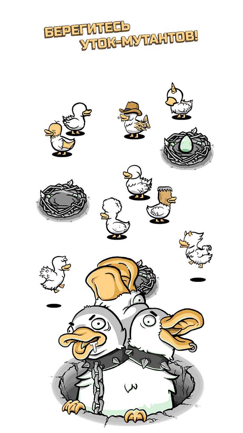 Clusterduck – это необычная мобильная игра, в которой вам предстоит выводить генетически модифицированных уток. И чем дальше заходят эксперименты, тем опаснее становится ситуация. Сумасшедших уток вылупляется все больше и больше, справляться с их нашествием становится все опаснее и интереснее. У каждого нового вида есть свое забавное описание, вообще с юмором в игре все в порядке, тут вы всегда сможете посмеяться от души. От редкости мутации многое зависит – обычная редкость не представляет особого интереса, а вот за утку с легендарной мутацией стоит побороться, вот только справиться с таким уникумом смогут лишь настоящие мастера.