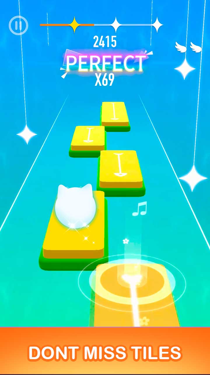 Dancing Cats – это очаровательная музыкальная игра с незатейливой механикой и ярким оформлением. Вместе с милым котом наслаждайтесь классными мелодиями и переходите на новые уровни. Здесь вас ждет своя уникальная «кошачья» музыка, представляющая собой сочетание мяуканья и обычной попсы. Опробуйте разные музыкальные стили, пойте легенды мировой сцены или выбирайте свой стиль. Тут всегда найдется куча классных песен для игры. Прыгайте котом по плиткам под ритмичные мелодии и просто отдыхайте в приятной атмосфере.