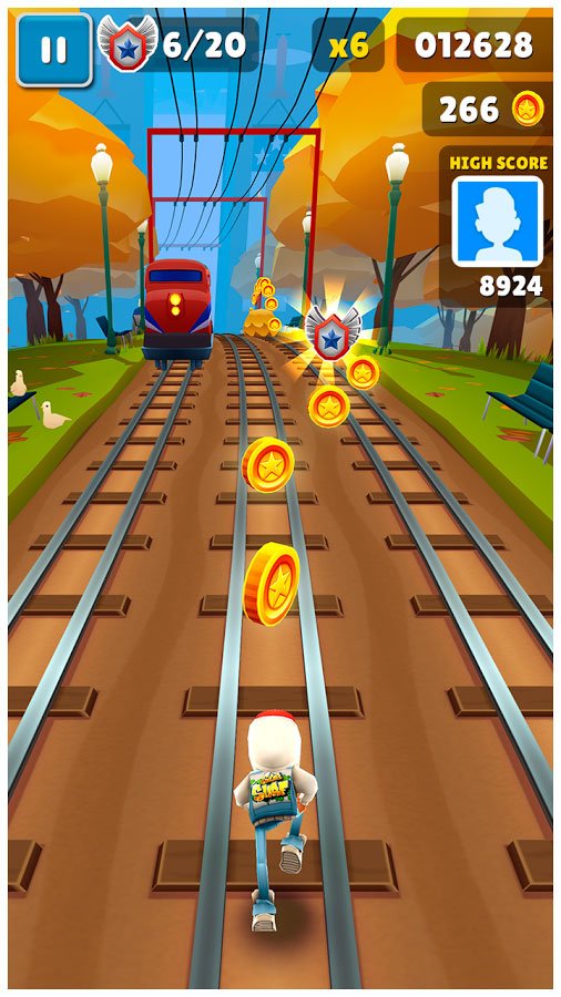 Subway Surfers – это захватывающая скоростная игра, в которой вы сможете покататься на скейтах по железной дороге в метро. Ловкость и изворотливость являются здесь наиболее полезными качествами, ведь придется на больших скоростях обгонять поезда и уворачиваться от постоянно меняющихся препятствий. Маневрируйте среди преград и получайте больше очков за успешное прохождение уровня. Отличная трехмерная графика позволит вам вдоволь насладиться игровым процессом, а оптимально подобранное звуковое сопровождение заметно усилит этот эффект.