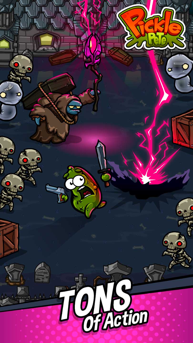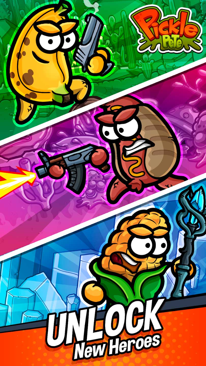 Pickle Pete: Уцелевший – это эпичная аркадная игра с офлайн режимом и колоритным главным героем. Таких крутых огурцов вы еще точно не встречали. Здесь вы будете уничтожать толпы монстров, заполонивших весь мир. Комбинируйте навыки под свой боевой стиль и прокачивайте персонажей, открывая все новые игровые возможности. Среди героев тут вы увидите не только вооруженного до зубов огурца – также по мере прохождения игры вам станут доступны банан, кукуруза, хот-дог и другие классные ребята, готовые крушить врагов направо и налево.
