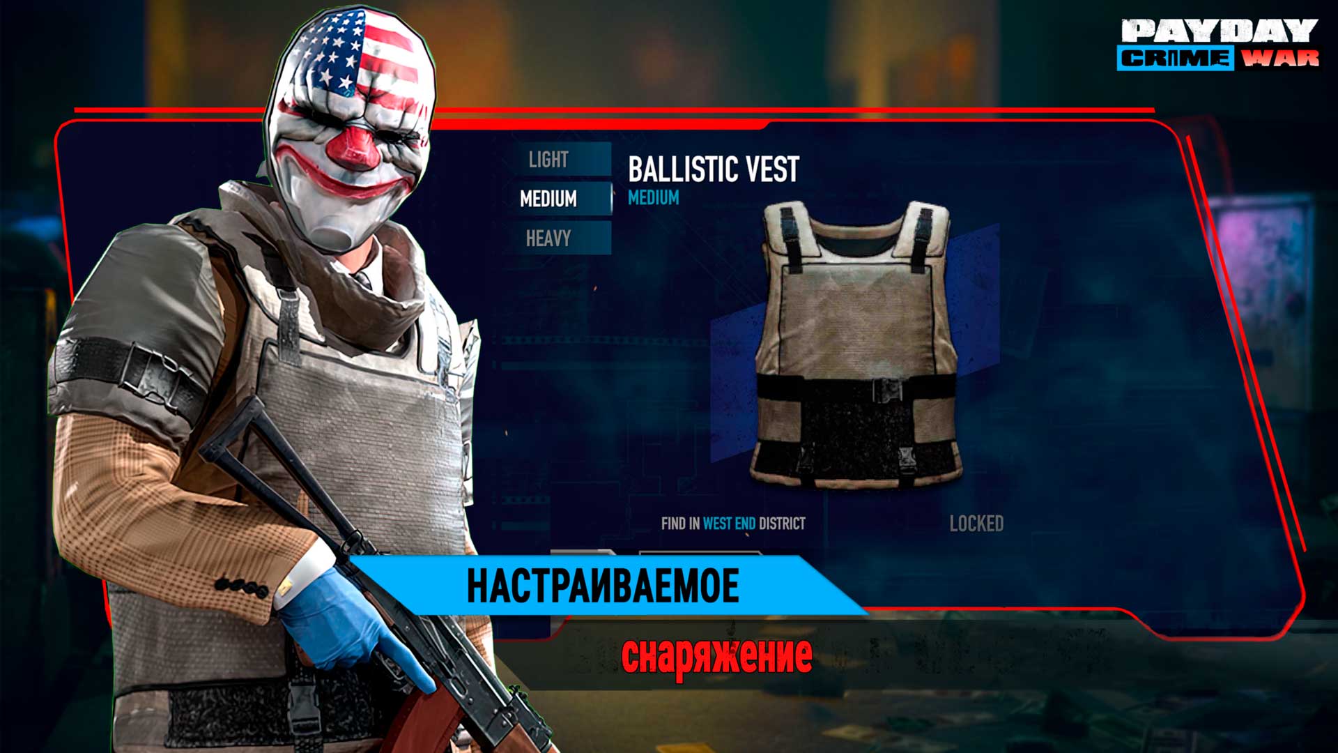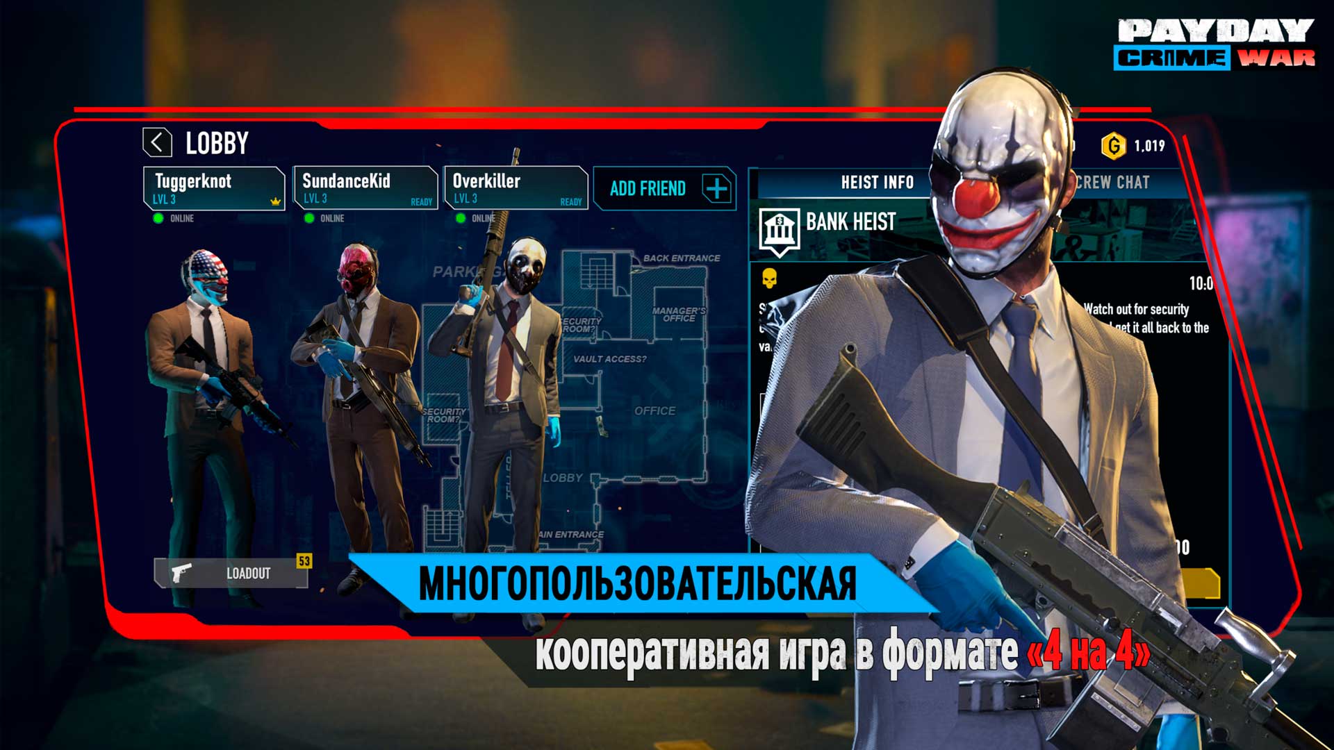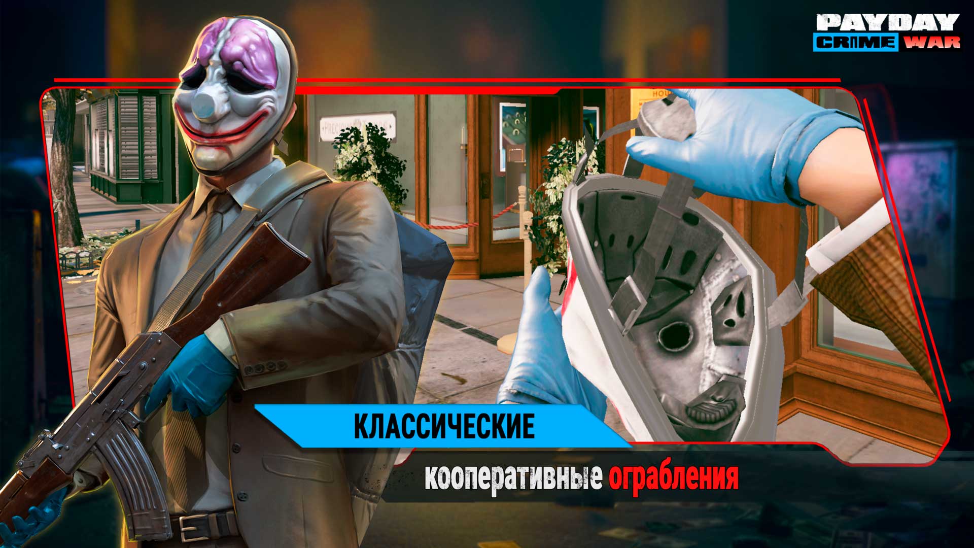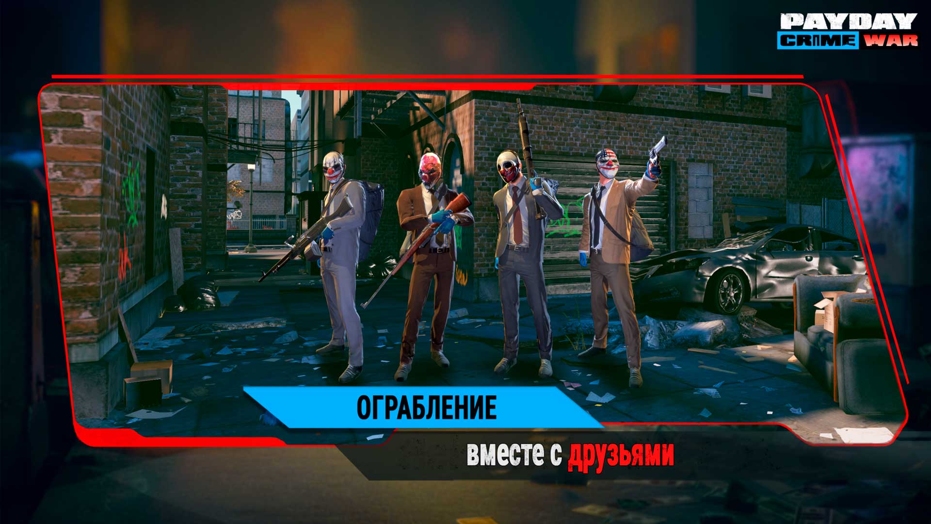 PAYDAY: Crime War – это легендарная игра про масштабные ограбления в формате крутого мобильного шутера. Собирайтесь с друзьями в кооперативном режиме и соревнуйтесь с другими игроками в динамичных раундах. Классические ограбления из первых частей знаменитой серии позволяют любому желающему показать свои стратегические навыки в вопросе планирования преступлений. Криминальное противостояние в самом разгаре, грабежи не повторяются, доступных предметов и оружия становится все больше, а игровые возможности заметно расширяются.Информация об игре