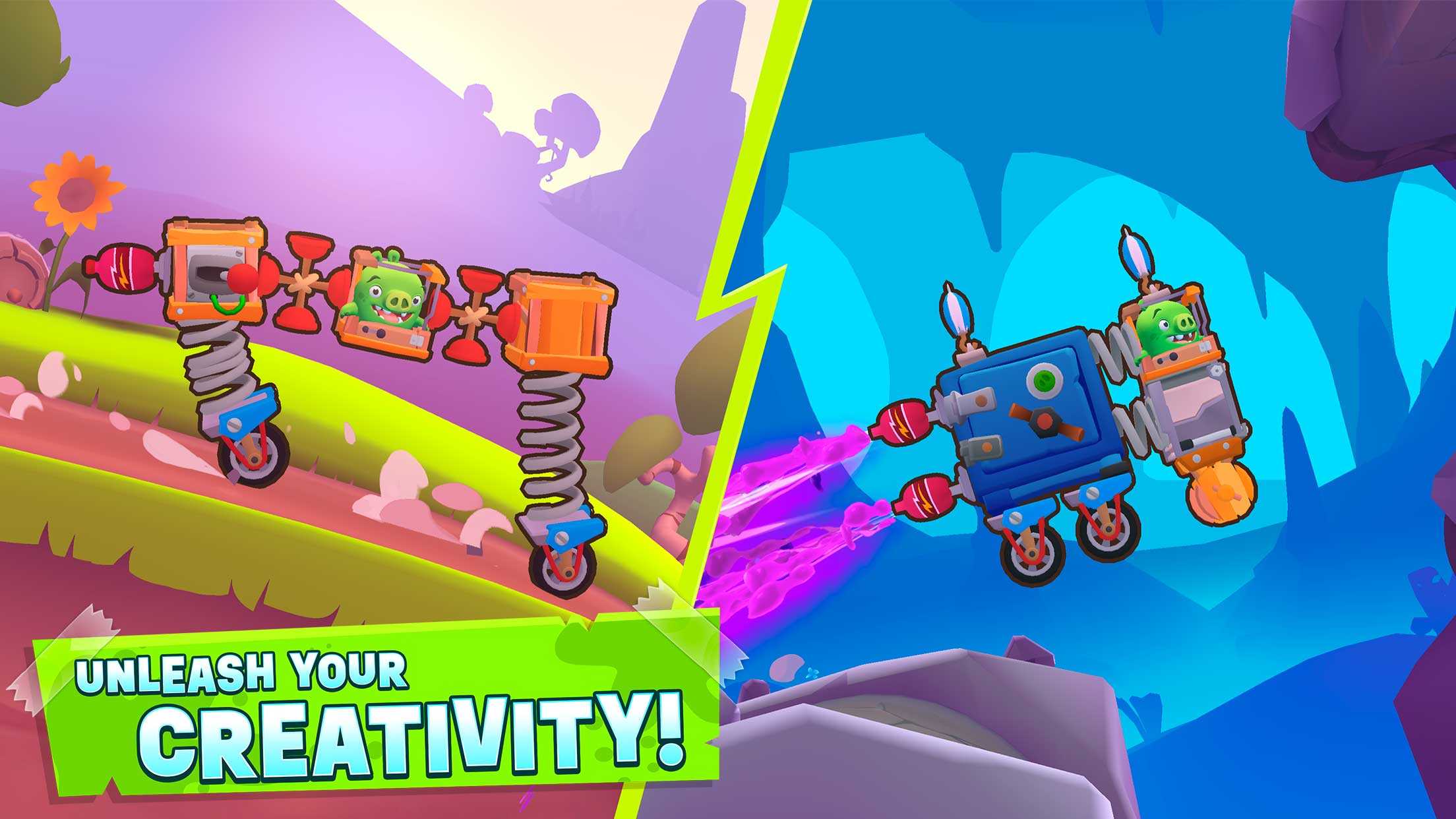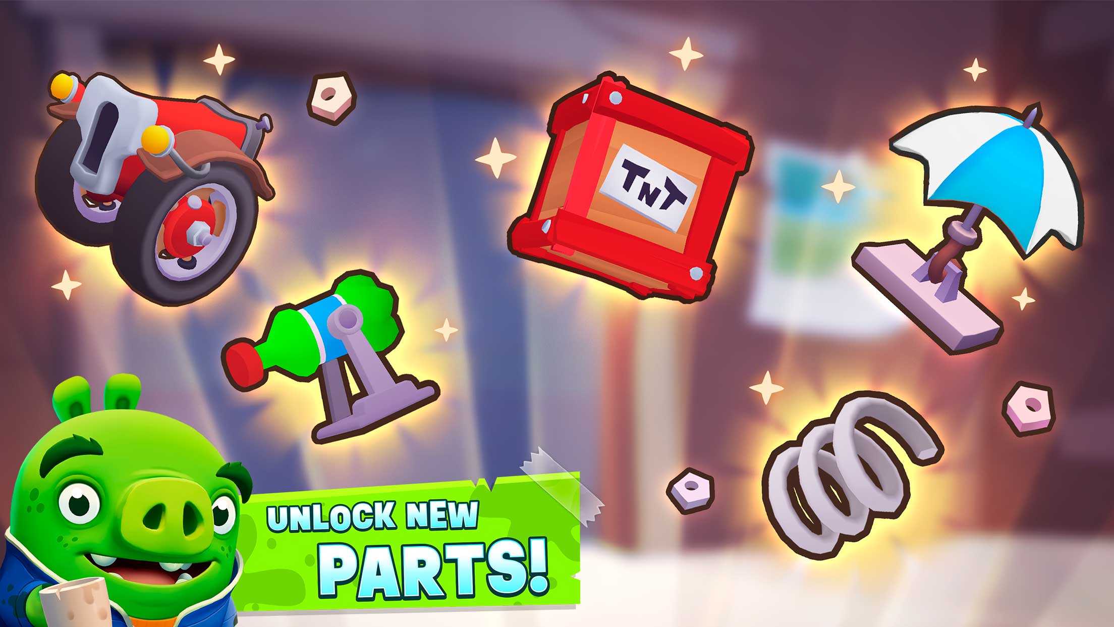 Bad Piggies 2 – это продолжение веселых приключений с кучей смешных шуток и занимательных испытаний. Главный герой Свин готов творить и создавать необычные транспортные средства, чтобы проходить новые уровни и ставить очередные рекорды. Изучайте хитроумные конструкции, ищите разнообразные детали и пускайте их в дело – лишь бы странное получившееся сооружение смогло добрать до конца трассы. С такой необычной аркадной головоломкой, выполненной в стиле популярной мультяшной вселенной, скучать вам явно не придется.