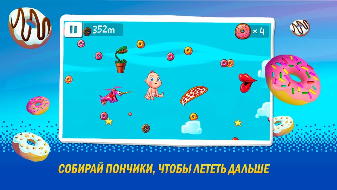 Отправляйтесь летать по этому красивому и приятному небу и наслаждайтесь такой идеальной атмосферой. Сыграйте в самую невероятную игру героев, чтобы устроить крутое шоу и станьте лучшим. Это будут очень затягивающие и интересные приключения. От такой красивой и замечательной игры будет очень трудно оторваться. Постоянно увеличивайте сумму своих очков, чтобы подниматься по системе рейтинга и сбирайте как можно больше монеток. Они позволят вам купить новые костюмы и увеличить свои преимущества. Ставьте эксперименты и пробуйте в действии новые боевые комбинации. Благодаря пончикам можно будет создавать даже прекрасную радугу.