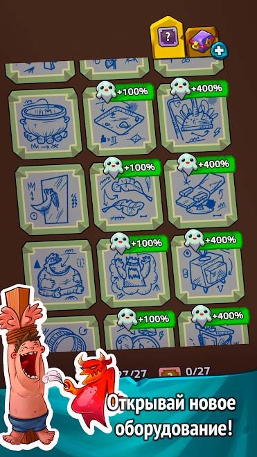 - Многоуровневая система улучшений и прокачки пыточных камер и демонов.