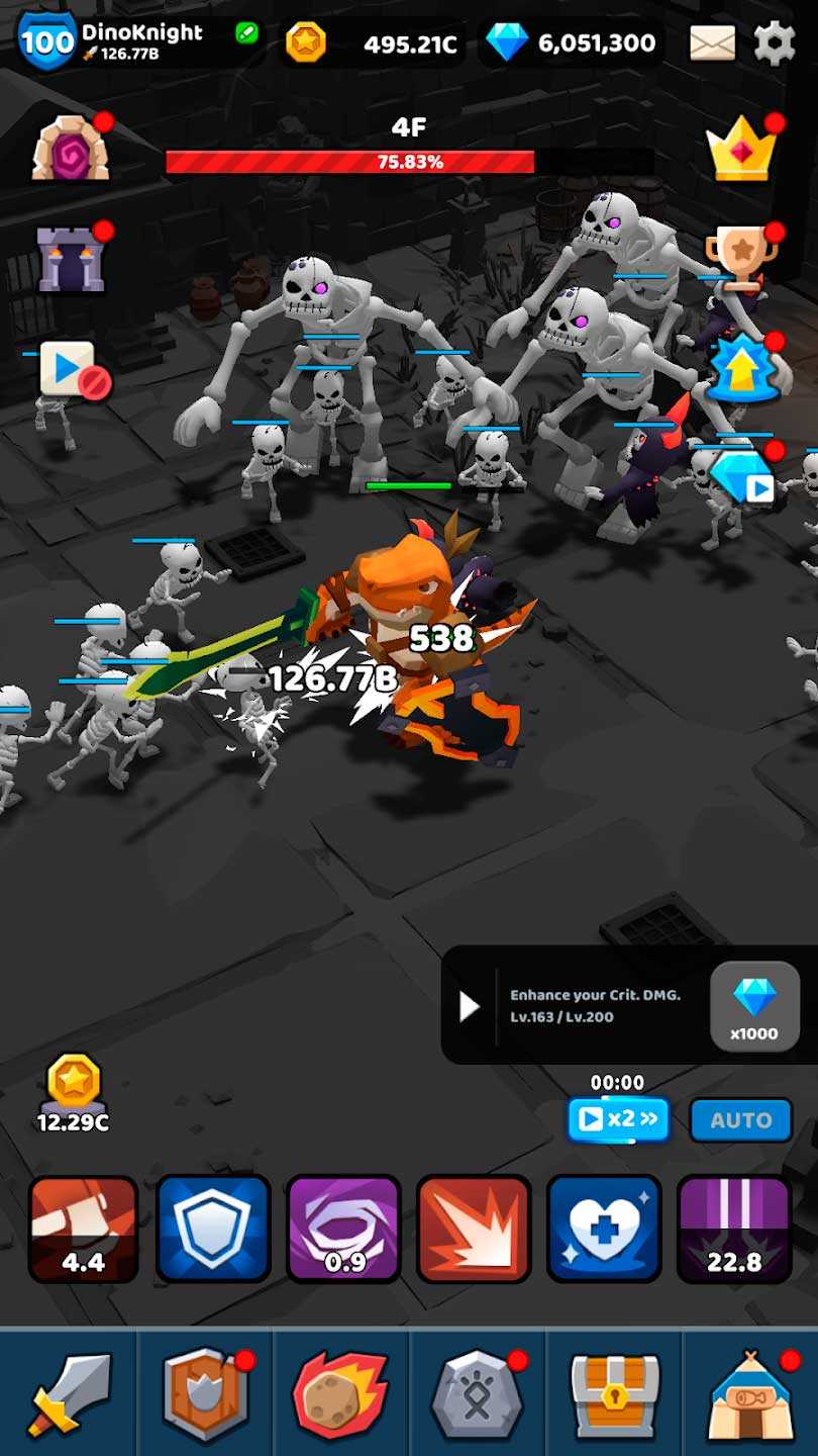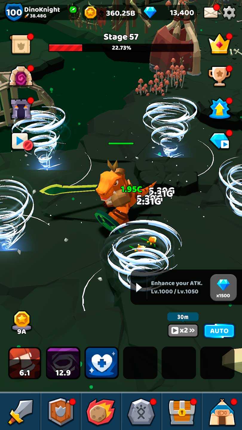 Dino Knight – это увлекательная ролевая игра, в которой вы станете легендарным Дино-рыцарем. Путешествуйте по разным подземельям, сражайтесь с монстрами, уничтожайте сильных врагов и получайте уникальные трофеи. Незатейливая механика и приятная атмосфера с первых же минут подарят вам отличное настроение. Воюя и выполняя задания вы станете опытным рыцарем, способным на великие свершения. Ваши герои всегда готовы к битве – даже в офлайн режиме они продолжают сражаться и добывать для вас награды и опыт.Информация об игре