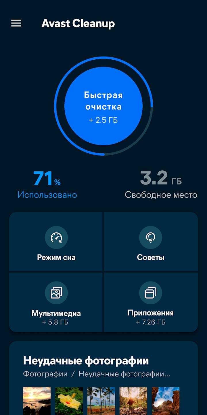 Avast Cleanup – это доступный интерактивный чистильщик, позволяющий обеспечить любому мобильному устройству достойное состояние его памяти. Он быстро проанализирует состояние файлов, определит степень их необходимости, найдет повторы и другие ненужные элементы. С его помощью также можно отключать все фоновые программы одним нажатием. Интуитивно понятный интерфейс, современный дизайн, полезный функционал и другие преимущества данного проекта делают его весьма популярным среди пользователей.