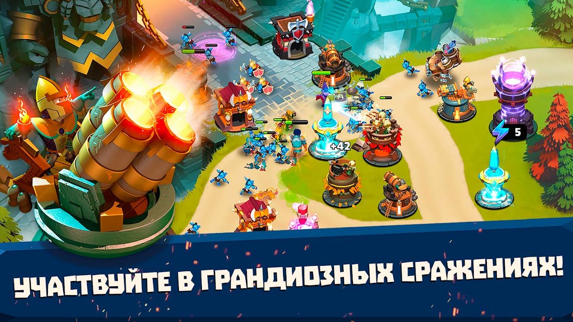 Погружайтесь в эти уникальные многопользовательские сражения вместе со своими друзьями. Собирайте невероятно мощную армию из легендарных воинов и отправляйте их на новые завоевания. Наслаждайтесь этой фантастической атмосферой и пройдите массу сюжетных заданий, где вас будут ждать уникальные сценарии. Можете воспользоваться социальными сетями и пригласить на бой своего приятеля. Постоянно собирайте награды и опыт, чтобы улучшать способности и умения своего героя. Создайте огромную армию из легендарных монстров и поставьте улучшенные башни для организации эффективной защиты от монстров.