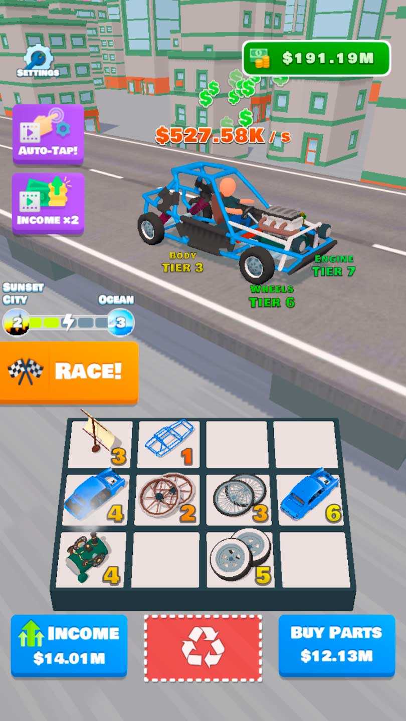 Idle Racer – это удивительный мир интерактивных гонок, где вас ждут эпичные заезды на уникальных тачках. Сначала вы будете рулить обычным автомобилем, но уже скоро сможете его улучшить как захотите. Покупайте новые детали, устанавливайте различные декоративные элементы, создавайте свой стиль – широкие возможности игры открыты для самовыражения. Гоните на полной скорости и оставляйте противников далеко позади, наслаждайтесь азартом соревнований и оригинальным оформлением проекта. Здесь всегда можно отлично отдохнуть и провести время с интересом.
