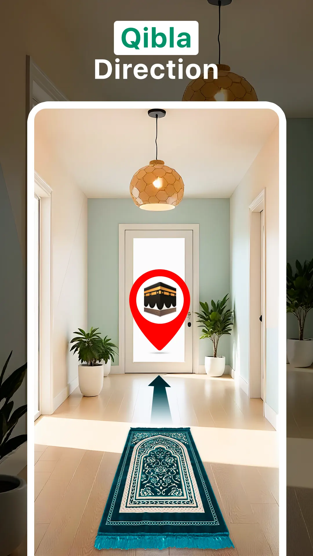 - Помогает правильно ориентироваться на Каабу, где бы вы ни находились.