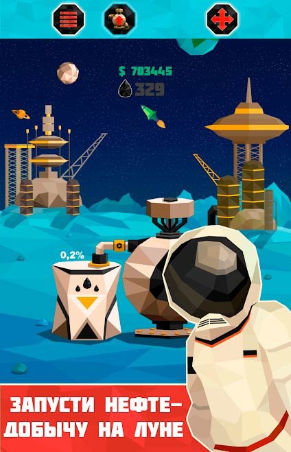 Благодаря развитию собственного нефтяного бизнеса у вас может получиться завоевать этот огромный мир и стать властью. Богатейте каждый день в этом простом, но очень оригинальном кликере. Станьте самым крутым во всем мире нефтяником и пройдите через путешествие по десятку локаций, где вы должны будете начать со строительства, а потом просто заходить, чтобы получить прибыль. Игроку предстоит заняться добычей нефти даже на луне и в джунглях.