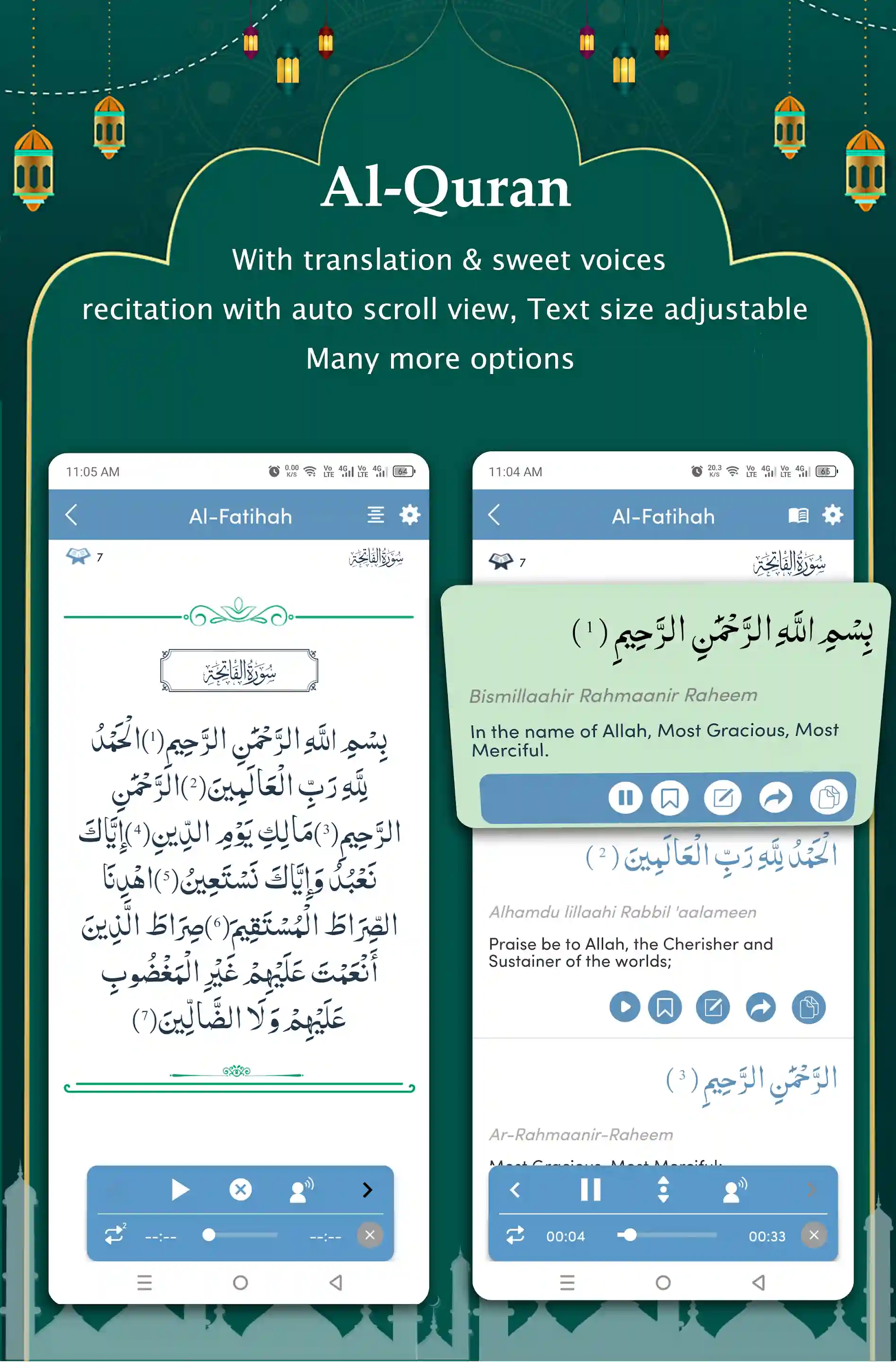 Читайте полный текст Корана на арабском с переводами на разные языки и прослушивайте профессиональные аудиозаписи.