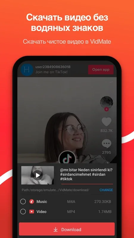 VidMate — это приложение, которое позволяет скачивать видеоконтент с популярных платформ, таких как YouTube, Facebook, Instagram, TikTok и других, прямо на ваше Android-устройство. С этим инструментом вы сможете просматривать любимые видео без подключения к интернету, в любое время. Также предоставляется возможность выбирать качество и формат видео перед загрузкой.